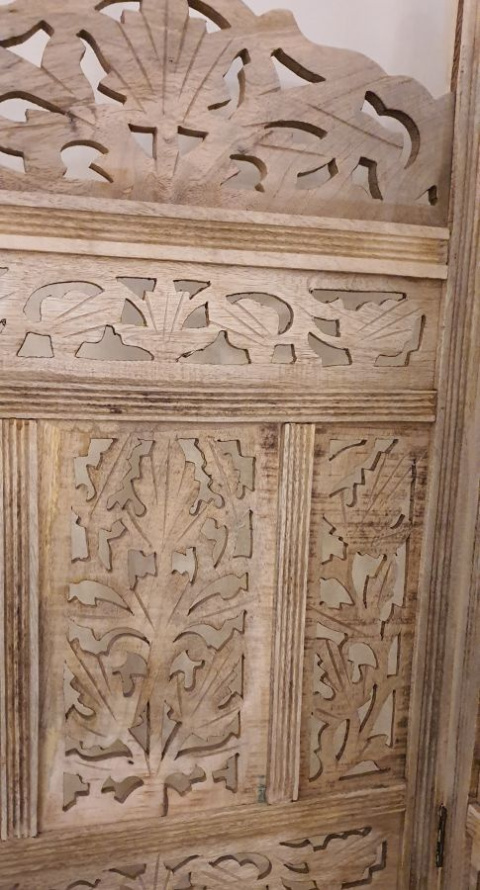 Ażurowy drewniany parawan z Indii ręcznie rzeźbiony