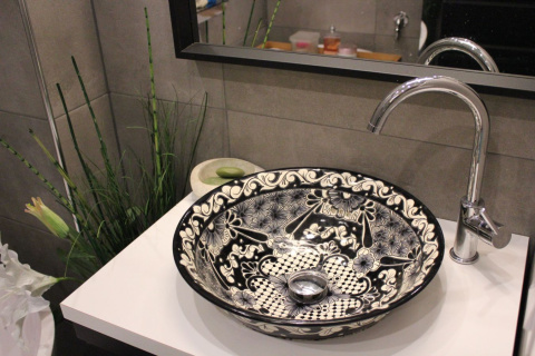 Umywalka jest wykonana w tradycyjnej technice Talavera i pochodzi z małej miejscowości Dolores Hidalgo w centralnym Meksyku. Technika Talavera charakteryzuje się bogactwem wzornictwa oraz intensywnością kolorów. Każda umywalka jest unikalna i z pewnością podkreśli wyjątkowość i styl Twojej łazienki.