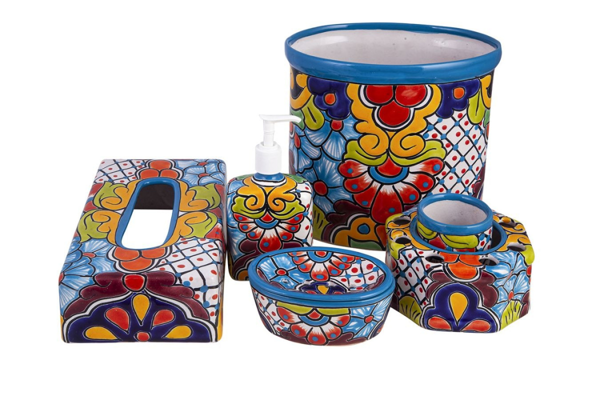 Ceramiczny kolorowy zestaw łazienkowy z Meksyku D