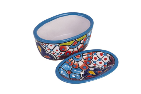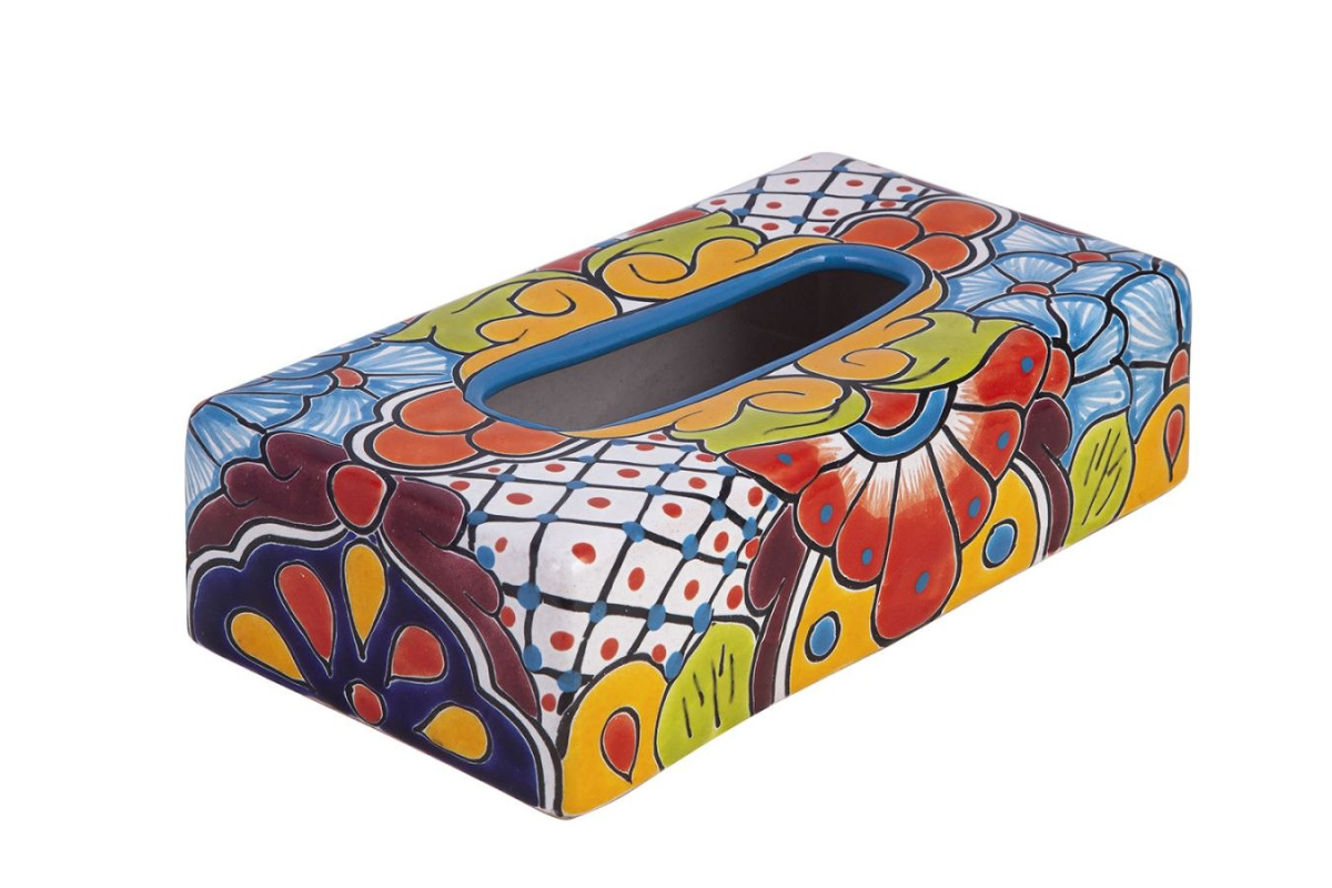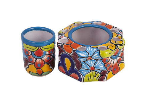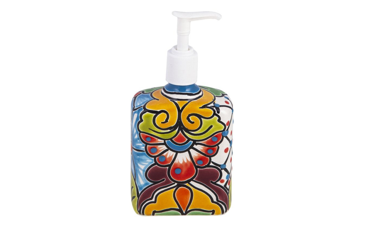 Meksykański, unikalny ceramiczny zestaw łazienkowy Agua, z ręcznie malowanymi wzorami. Zestaw został wyprodukowany w stylu Talavera i pochodzi z małej miejscowości Dolores Hidalgo w centralnym Meksyku. Każdy z produktów składających się na zestaw został ozdobiony symboliką florystyczną charakterystyczną dla stylu Talavera. Prócz niewątpliwych walorów użytkowych komplet ten stanowi oryginalną i niebanalną dekoracje łazienki.