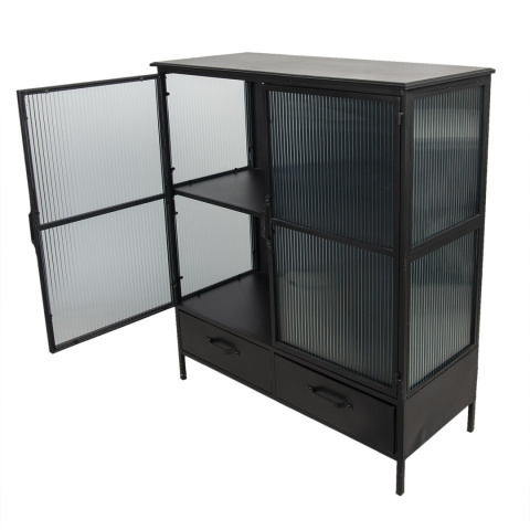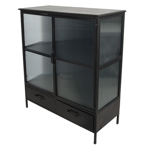 Czarna metalowa witryna z szufladami industrialna