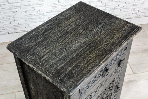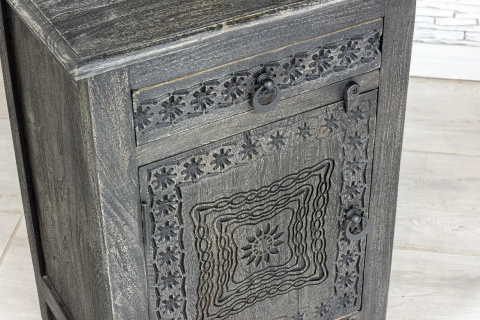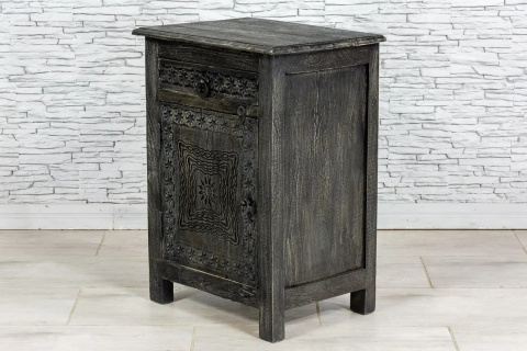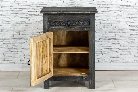 Przecierana szafka nocna wykonana w małej, indyjskiej manufakturze z litego drewna egzotycznego.