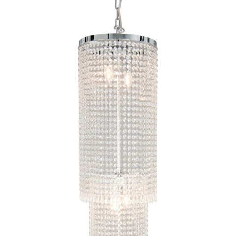 Żyrandol jest niezwykle dekoracyjny i ciężko przejść obok niego obojętnie. Stworzono go z małych szklanych koralików, które zamocowano na srebrnej, połyskującej konstrukcji. Polecamy szczególnie do luksusowych hoteli, eleganckich restauracji i sali bankietowych.
