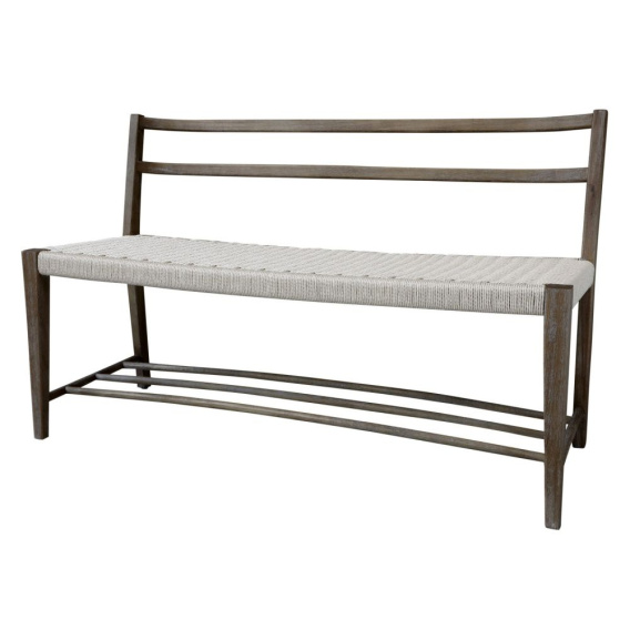 Drewniana ławka z plecionym siedziskiem z serii Limoges marki Chic Antique w stylu skandynawskim.