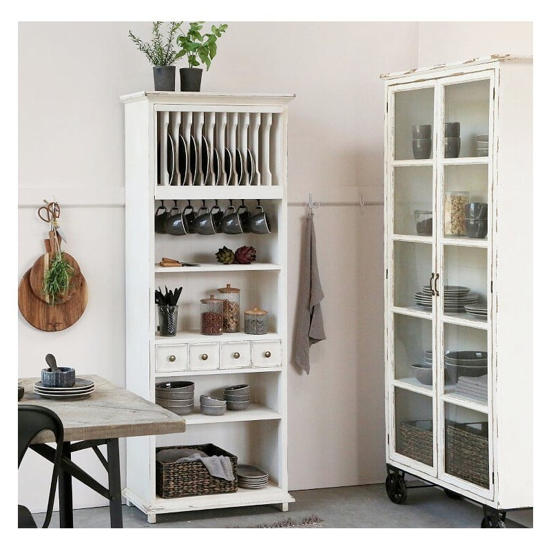 Biała, drewniana witryna na kółkach w stylu prowansalskim marki Chic Antique.