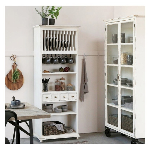 Prowansalski, postarzany drewniany regał z półką na talerze marki Chic Antique.