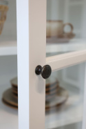 Ten wyjątkowy, przeszklony kredens polecamy łączyć z produktami takimi jak: biały stół do jadalni, drewniana komoda czy metalowa lampa w stylu prowansalskim.
