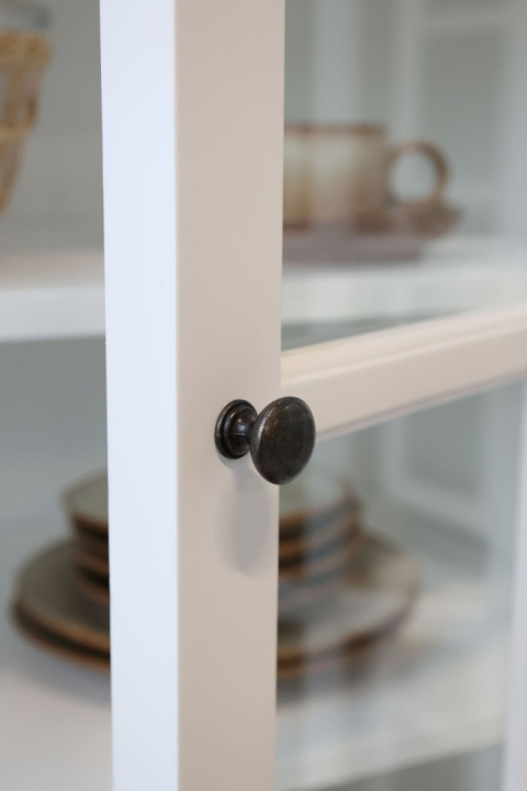 Mebel idealny do przestronnej jadalni, kuchni lub salonu. Ze względu na swój uniwersalny design odnajdzie się w wielu aranżacjach. Kredens będzie się pięknie prezentował w stylizacji prowansalskiej, vintage, a także klasycznej. Witryna podzielona jest na dwie części — górną i dolną, i obydwie mają zamontowane pojemne półki. Witryna idealnie sprawdzi się jako mebel na szkło, porcelanę i inne naczynia. Może być również ekspozytorem w klimatycznym sklepie czy butiku.