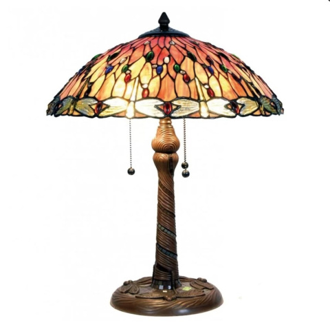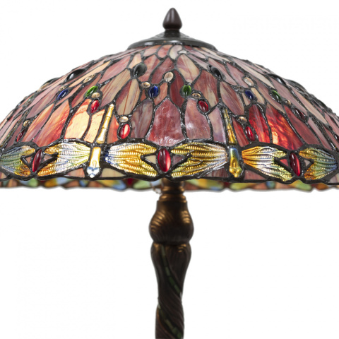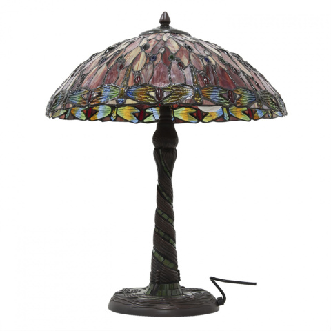 Piękna, duża lampa witrażowa stołowa TIFFANY z subtelnym motywem ważki od Clayre & Eef.