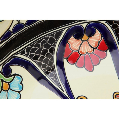 Umywalka jest wykonana w tradycyjnej technice Talavera i pochodzi z małej miejscowości Dolores Hidalgo w centralnym Meksyku. Technika Talavera charakteryzuje się bogactwem wzornictwa oraz intensywnością kolorów. Każda umywalka jest unikalna i z pewnością podkreśli wyjątkowość i styl Twojej łazienki.
