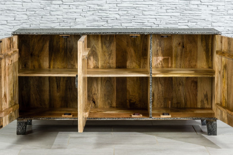 Indyjska komoda trzydrzwiowa, wykonana z litego drewna mango.