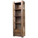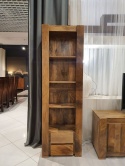 Wysoki i wąski regał z przeszkleniem wykonany z drewna mango.