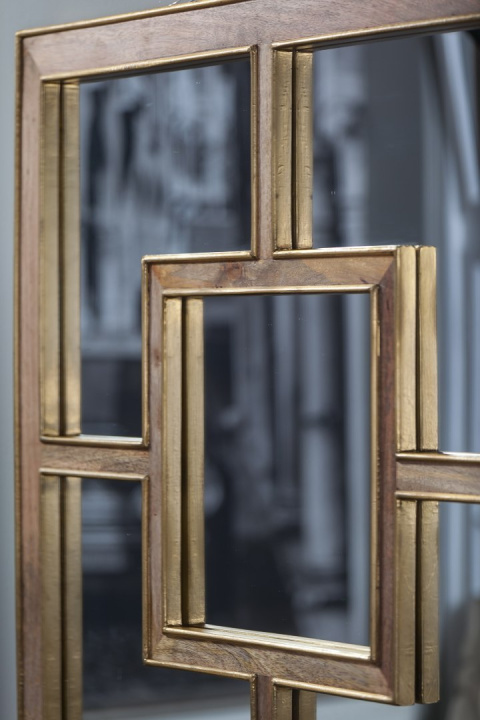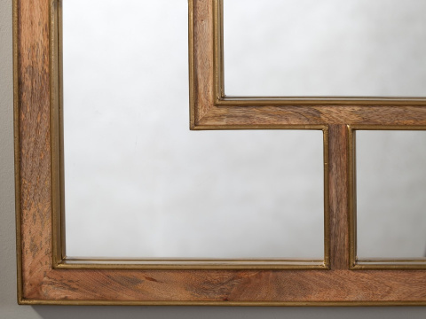 Lustro wykonano ręcznie w małej manufakturze w Indiach z drewna akacji indyjskiej. Krawędzie ramy pokryto okładziną z mosiądzu, co sprawia, że lustro jest wyjątkowo eleganckie. Polecamy zarówno do  klasycznych jak i nowoczesnych wnętrz.
