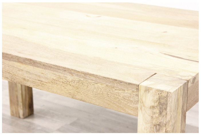 Mebel o neutralnym, ponadczasowym wyglądzie. Cechuje go prosta, stabilna i solidna konstrukcja. Stół wykonany z wyselekcjonowanego, egzotycznego drewna mangowca indyjskiego, w naturalnym odcieniu, którego piękno wydobyto dzięki zastosowaniu tradycyjnych indyjskich technik stolarskich. Blat stołu wykonany z długiej litej deski o grubości 3 cm. Stół pomalowany ekologicznym, akrylowym lakierem matowym.