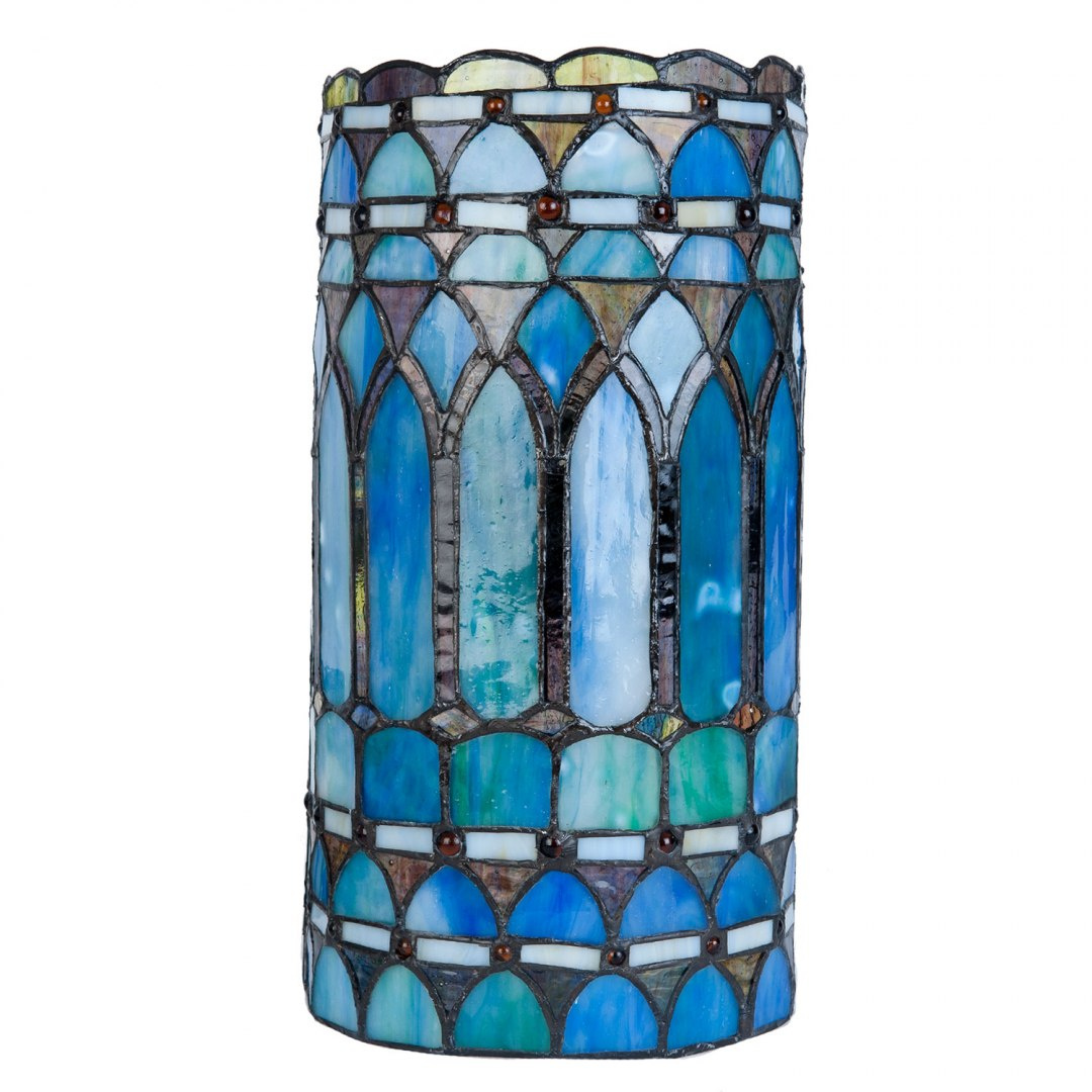 Niebieska, ścienna lampa witrażowa, kinkiet TIFFANY od Clayre & Eef.