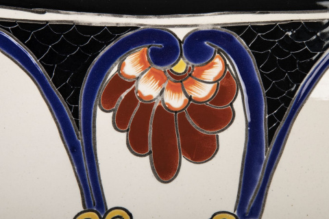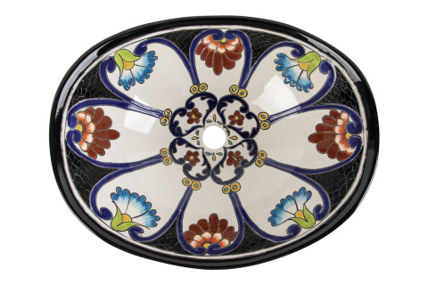 Umywalka jest wykonana w tradycyjnej technice Talavera i pochodzi z małej miejscowości Dolores Hidalgo w centralnym Meksyku. Technika Talavera charakteryzuje się bogactwem wzornictwa oraz intensywnością kolorów. Każda umywalka jest unikalna i z pewnością podkreśli wyjątkowość i styl Twojej łazienki.