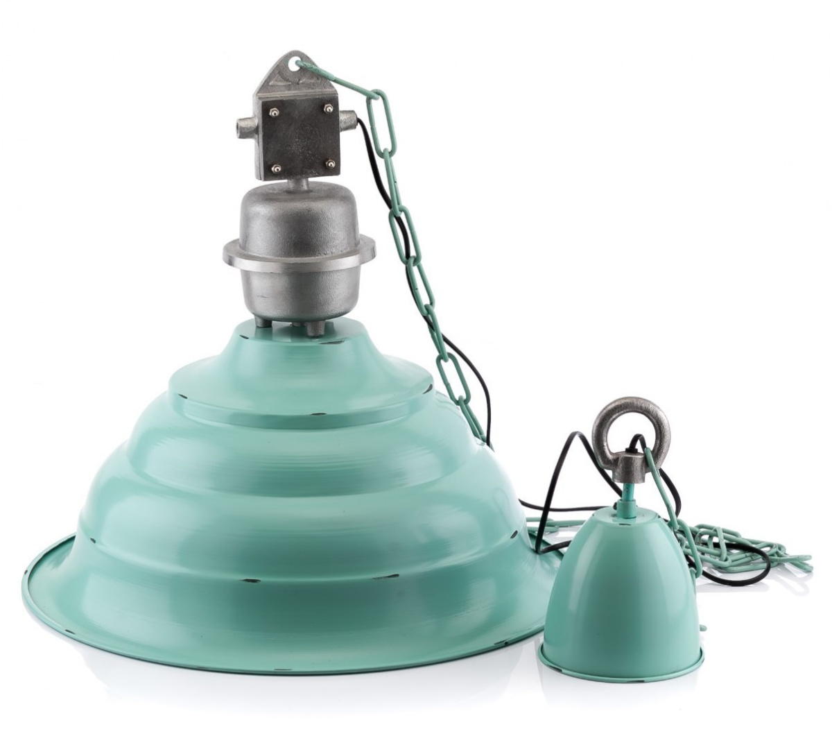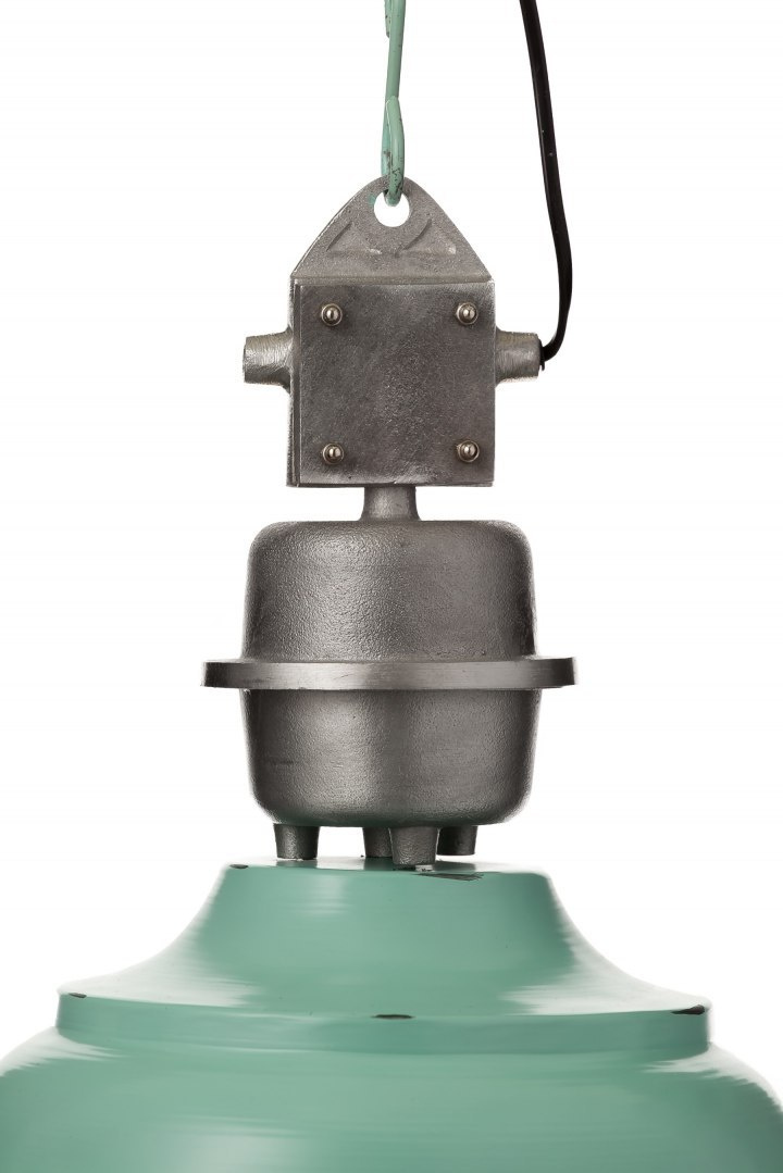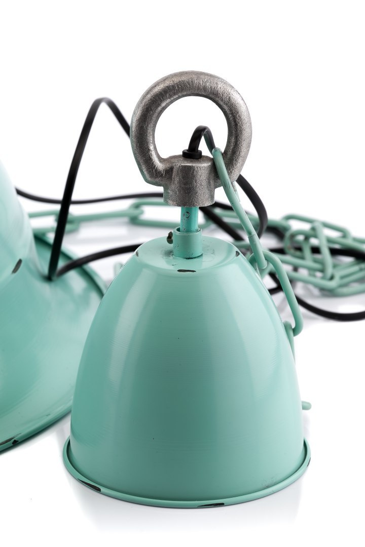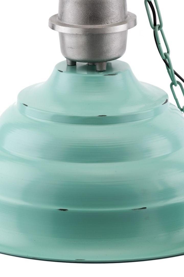 Designerska, metalowa lampa loftowa w kolorze miętowym, marki ALURO. Wykonana z metalu pomalowanego proszkowo na odcień zgaszonego turkusu. Ta piękna lampa ma w sobie tyle uroku, że jako centralny punkt pomieszczenia sprawi, iż będzie ono wyglądać niezwykle stylowo i efektownie. Przetarcia, delikatne odpryski są efektem zamierzonym.