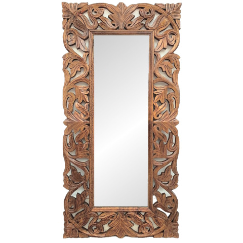 Orientalne lustro w drewnianej rzeźbionej ramie, z drewna mango w kolorze toffi.