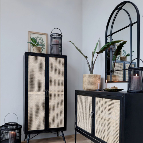 Lustro ścienne w czarnej, metalowej ramie w kształcie łuku marki Chic Antique.