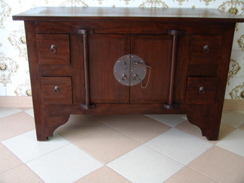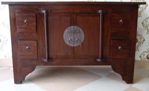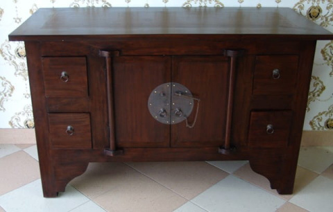 Drewniana komoda kolonialna z szufladami i schowkiem