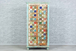 Meble indyjskie - pastelowa szafa w kwiaty przecierana