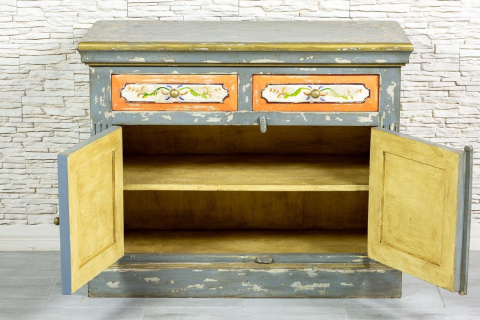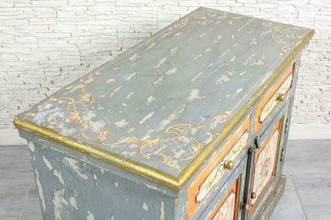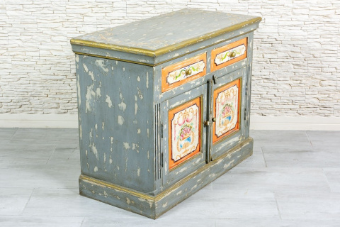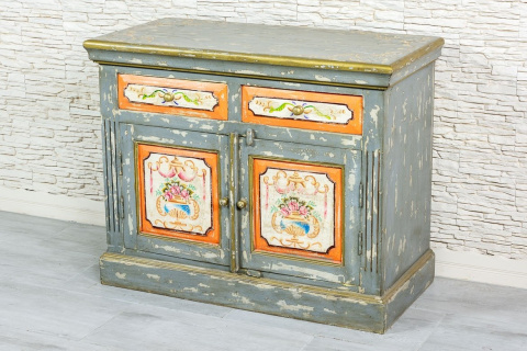 • Meble indyjskie - szara przecierana komoda w kwiaty rustykal