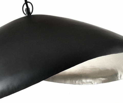 Lampy sufitowe z tej serii mają proste, minimalistyczne formy, a mimo to daleko im do nudy i oczywistości. Lekko falisty kształt klosza, połączony z czernią i odbijającym światło srebrem tworzą wyjątkową całość. Lampa zawieszona jest na kablu oplecionym łańcuchem.