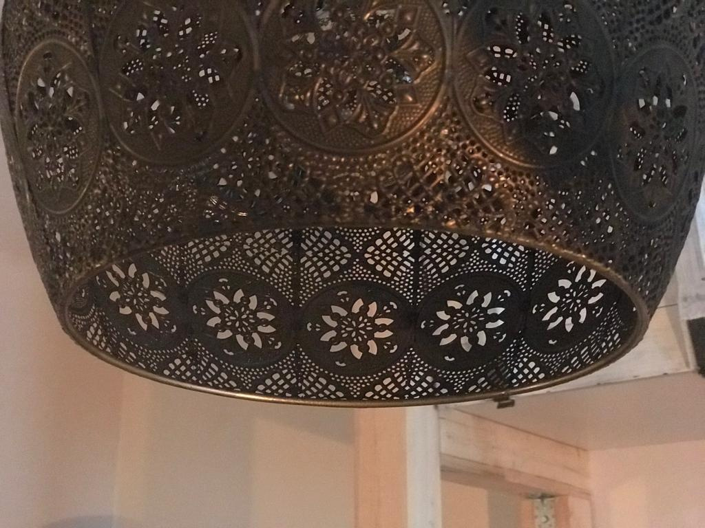 Piękna, metalowa ażurowa lampa wisząca, w stylu orientalnym marki Chic Antique.