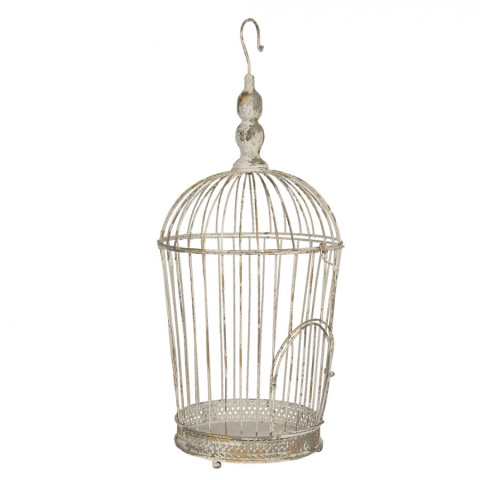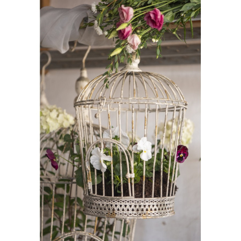 Postarzane, metalowe klatki wiszące w stylu prowansalskim marki Clayre & Eef. Taka dekoracyjna klatka to ozdoba do wnętrz o romantycznym, rustykalnym charakterze. Klatka została wykonana z metalu, co zapewnia jej trwałość i solidność. Delikatne, zwiewne elementy ozdobne, dodają klatce lekkości i elegancji.