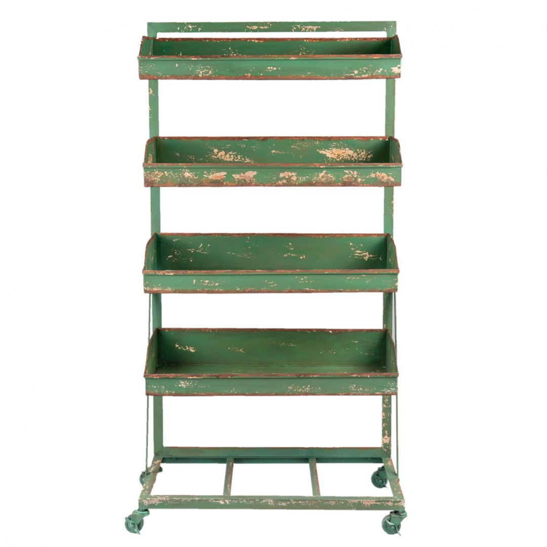 Taki mebel zaczaruje każdą kuchnię, oranżerię czy też stylowy sklep. Możliwości wykorzystania go jest nieskończenie wiele. Możesz zaaranżować nim każdą przestrzeń. Sprawdzi się jako kwietnik, stojak na owoce, prezenter czy pomocnik w klimatycznej restauracji. Może być regałem na książki w loftowym salonie lub półką na zdjęcia i dekoracje. Ozdobi także taras i ogród, a tylko od Twojej wyobraźni zależy, co na nim postawisz.