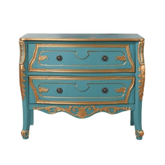 Mebel wygląda jak ze starego dworku lub pałacyku. Intensywny odcień i złote wykończenie, idealnie korespondują z wyrafinowanym kształtem mebla i eleganckimi uchwytami, które dopełniają tą wysmakowaną całość i dodają komodzie niezwykłego uroku.