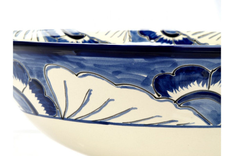 Umywalka jest wykonana w tradycyjnej technice Talavera i pochodzi z małej miejscowości Dolores Hidalgo w centralnym Meksyku. Technika Talavera charakteryzuje się bogactwem wzornictwa oraz intensywnością kolorów. Każda umywalka jest unikalna i z pewnością podkreśli wyjątkowość i styl Twojej łazienki.