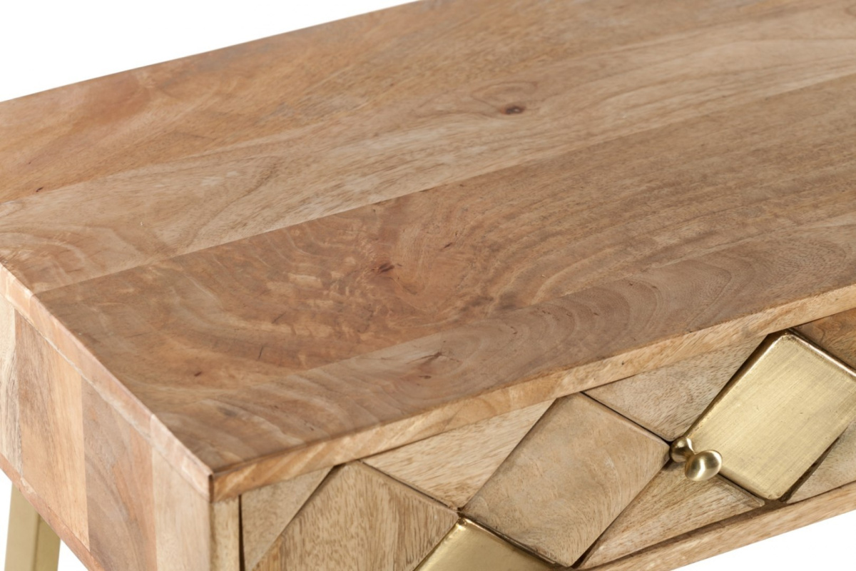 Materiał: drewno mango, wstawki z platerowanego mosiądzu, nogi żelazo