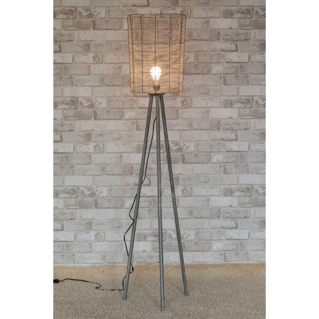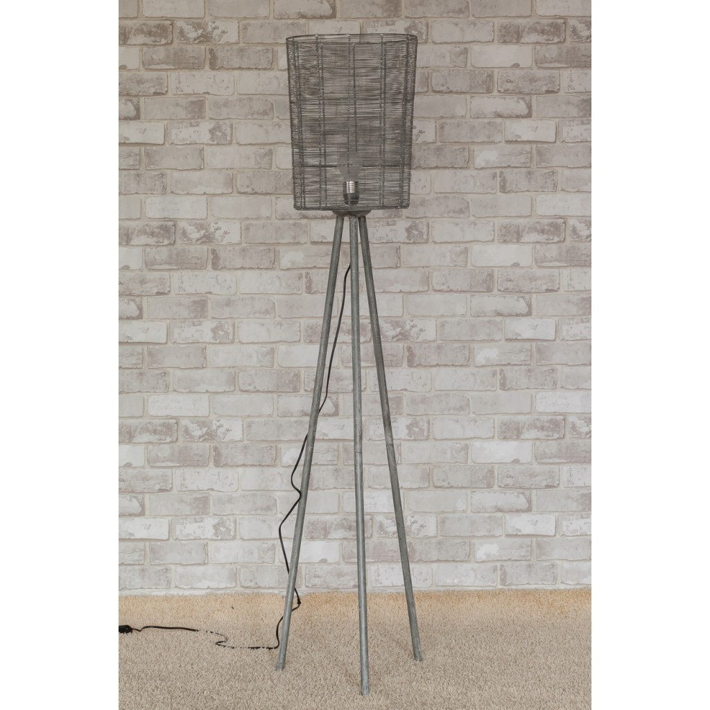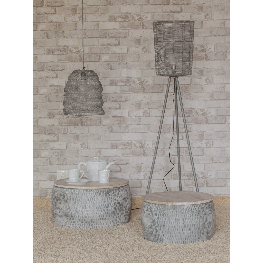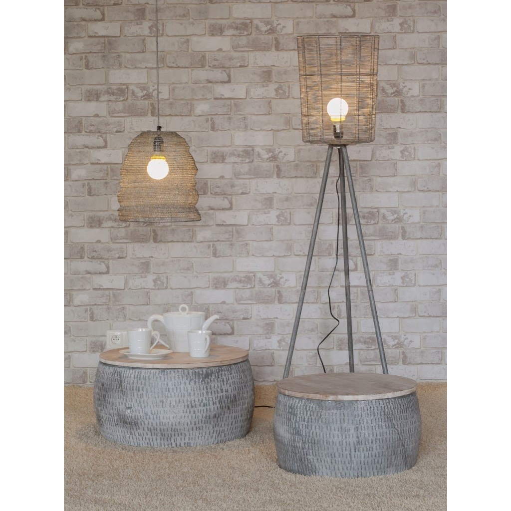 Ażurowa, nowoczesna metalowa lampa podłogowa, pokryta bielonym cynkiem antycznym, marki ALURO. Wykonana ręcznie w Indiach z najlepszych stopów metalu. Jej nowoczesny, surowy design nada wyjątkowego charakteru Twojemu wnętrzu. Pasuje do surowych i nowoczesnych wnętrz.