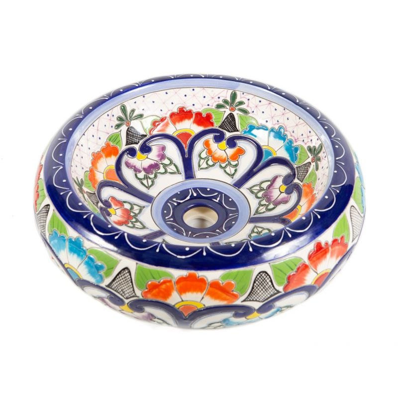 Okrągła meksykańska ceramiczna umywalka z reliefem