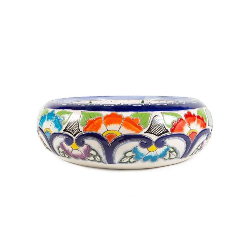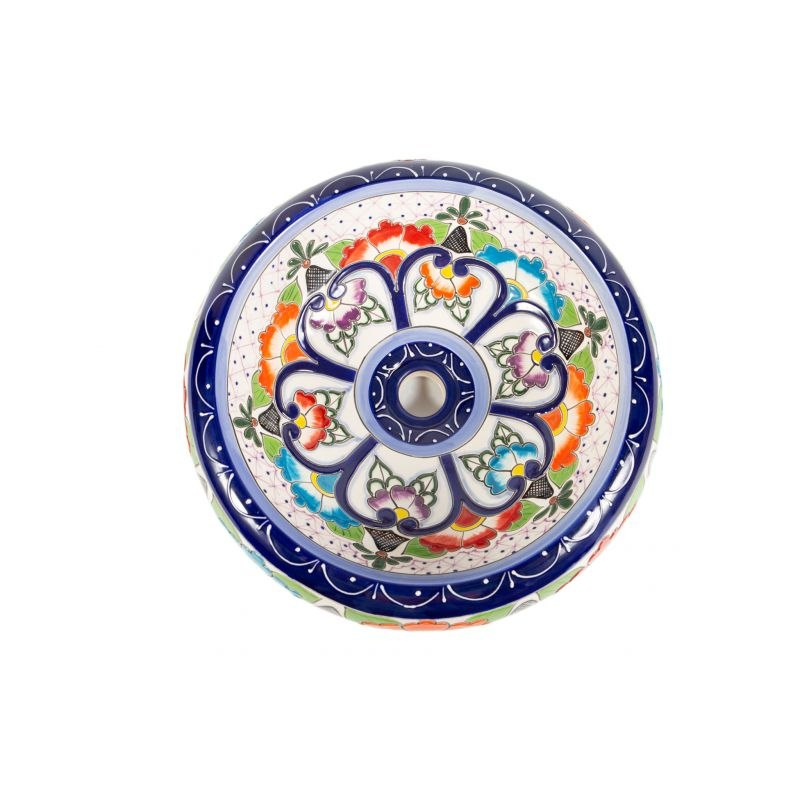 Okrągła meksykańska umywalka nablatowa ręcznie malowana.
