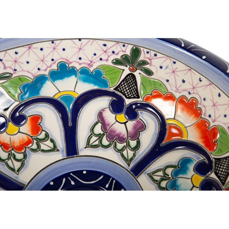 Umywalka jest wykonana w tradycyjnej technice Talavera i pochodzi z małej miejscowości Dolores Hidalgo w centralnym Meksyku. Technika Talavera charakteryzuje się bogactwem wzornictwa oraz intensywnością kolorów. Każda umywalka jest unikalna i z pewnością podkreśli wyjątkowość i styl Twojej łazienki.