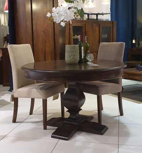Okrągły indyjski stół drewniany w stylu kolonialnym