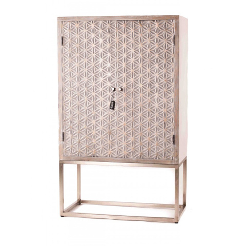 Wysoka drewniana komoda na metalowych nogach marki ALURO. Ta indyjska szafka drewniana na metalowym stelażu, to połączenie stylu orientalnego z nowoczesnym.