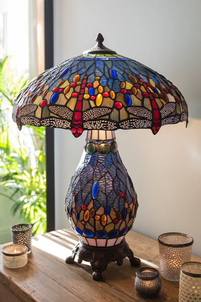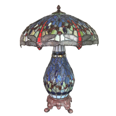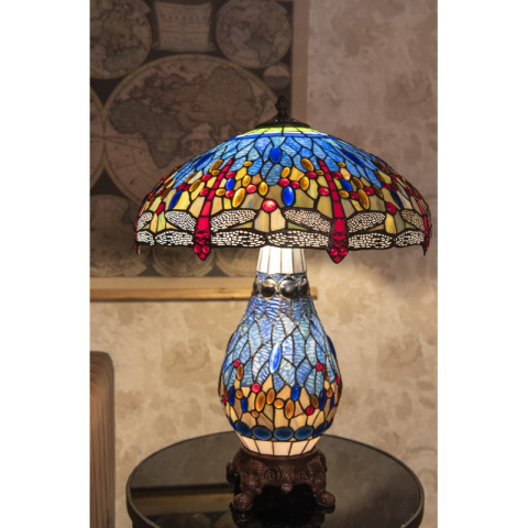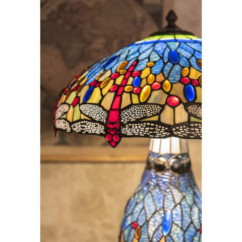 Magiczna, duża lampa stołowa witrażowa TIFFANY z subtelnym motywem ważki od Clayre & Eef.