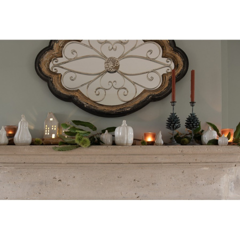 Lustro ma przepiękny kształt, a przez swoje wyjątkowe wykończenie przypomina autentyczny przedmiot z dawnych lat. Na tafli lustra umieszczono ozdobne okucie, piękny ornament, które dodaje całości wyjątkowego charakteru.