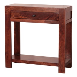 Podłużna, stylowa konsola, wykonana w Indiach z litego drewna mango, w kolorze toffi.