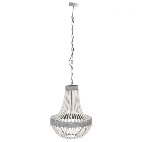 Postarzana, designerska lampa wisząca z drewnianymi koralikami marki Clayre & Eef.