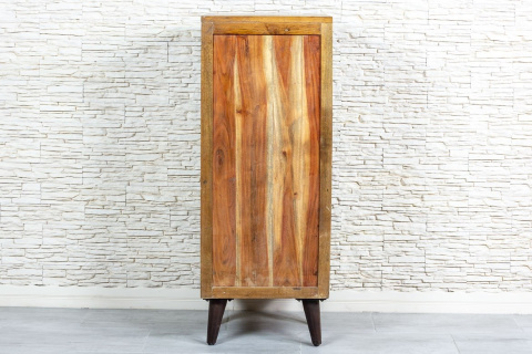 Wąska komoda indyjska na nóżkach, wyprodukowana w niewielkiej, rodzinnej manufakturze.