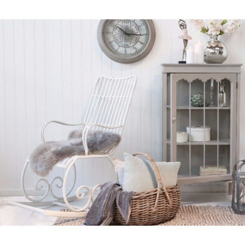 Piękna, przeszklona komoda stworzona przez projektantów duńskiej marki Chic Antique. Wykonana z wyjątkową dbałością o detale, pomalowana na kolor szary. Ten urokliwy mebel posiada boczne ściany oraz przednie drzwi przeszklone. Ta wyjątkowa komoda na nóżkach, ozdobi jasne, klimatyczne wnętrze.
