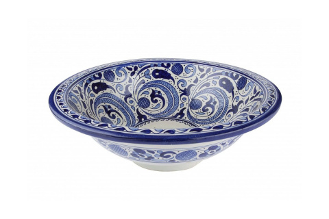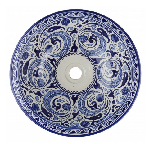 Piękna ceramiczna niebieska umywalka z Maroka, ręcznie malowana.