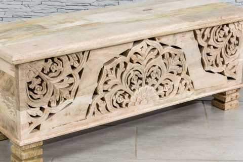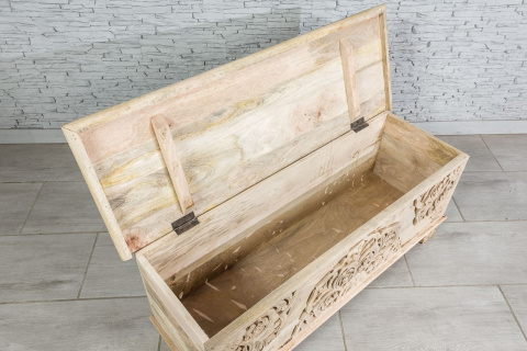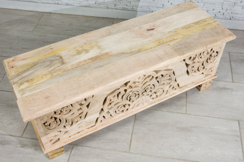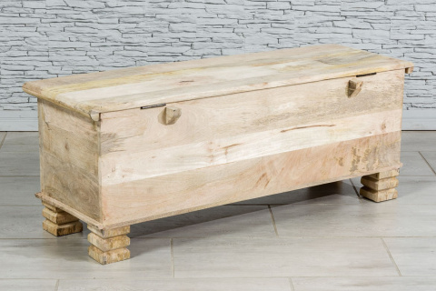• Rzeźbiona indyjska skrzynia na nóżkach surowe mango