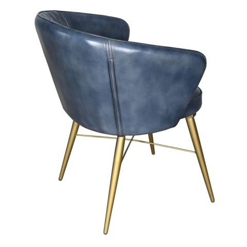 Stylowe szare krzesło skórzane na złotych, metalowych nogach.