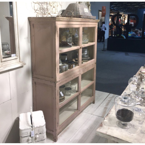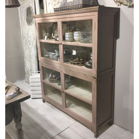 Stylowa, oryginalna, drewniana przeszklona witryna, zaprojektowana przez duńską markę Chic Antique. Ta pojemna witryna, to mebel stworzony do wysmakowanych wnętrz. Swój wyjątkowy wygląd zawdzięcza efektowi postarzenia oraz oryginalnemu pudrowemu kolorowi. Bruzdy, odpryski, przecierki sprawiają, że wygląda jak z zabytkowego domu. Mebel posiada przeszkloną witrynę z uchwytami vintage oraz cztery drewniane półki. Ten niesamowity mebel sprawdzi się w każdym pomieszczeniu. Ozdobi zarówno stylowy salon jak również kuchnię.