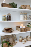 Mebel idealny do przestronnej jadalni, kuchni lub salonu. Ze względu na swój uniwersalny design odnajdzie się w wielu aranżacjach. Będzie się pięknie prezentował w stylizacji prowansalskiej, vintage, a także klasycznej. Witryna podzielona jest na dwie części — górną i dolną, i obydwie mają zamontowane pojemne półki. Idealnie sprawdzi się jako mebel na szkło, porcelanę i inne naczynia. Może być również ekspozytorem w klimatycznym sklepie czy butiku.